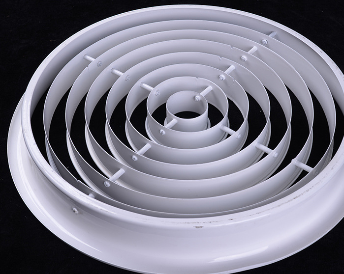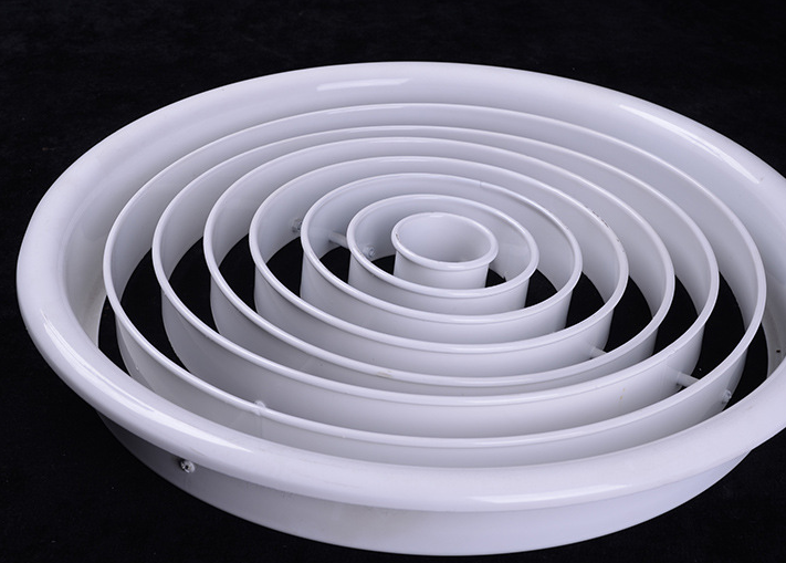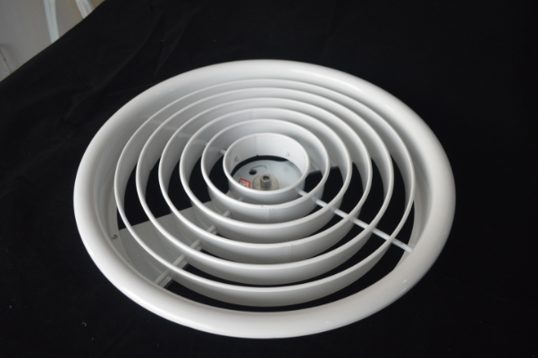 結構外觀為圓形,內心有多個圓環(huán)組成,能可上下45度調整風口阻力小,適用于劇院,體育館及樓層較高的場所,可附加風量調調節(jié)閥。產(chǎn)品外形美觀外。表面采用靜電噴塑,烤漆或者陽極處理。選用優(yōu)質加厚鋁合金材料,更加耐用