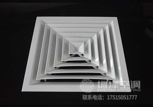 方形散流器先調(diào)挺直,表面光潔,葉片角度為固定式,葉片采用夾角片沖壓連接,整個葉片與邊框采用分離式結(jié)構(gòu),以方便安裝與調(diào)節(jié)。設(shè)計時可根據(jù)房間造型不同,選用不同出風(fēng)方向的散流器,可與調(diào)節(jié)閥配套使用。方形散流器有四種氣流吹出形式,分別為一面吹(A1SO)、二面吹(A2SO)、三面吹(A3SO)、四面吹(A4SO)。鋁合金表面經(jīng)陽極氧化處理,也可根據(jù)用戶要求進行靜電噴塑處理。