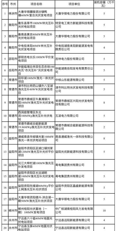 附件:湖南省2020年光伏發(fā)電平價上網(wǎng)項目表
