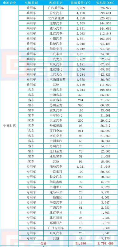 2020年Q1寧德時代國內(nèi)各車輛類別裝機(jī)量分析(KWh)