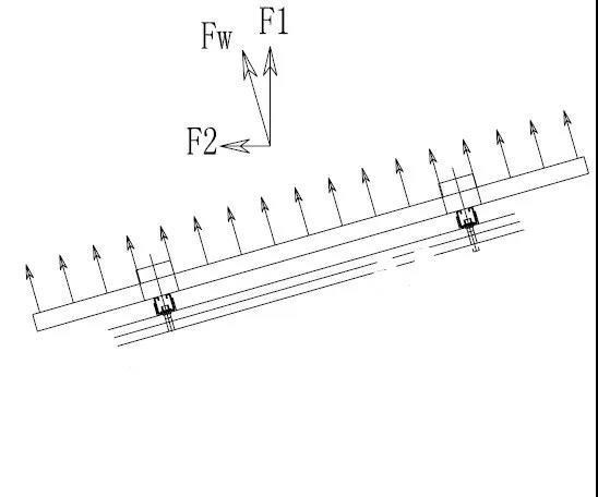 經(jīng)過(guò)計(jì)算,垂直于光伏組件表面的上吸風(fēng)力標(biāo)準(zhǔn)值約Fw=71.008kN。根據(jù)角度關(guān)系計(jì)算,在逆風(fēng)時(shí)產(chǎn)生的豎向吸力F1= cos(20°)xFw=66.726 kN≈6.7噸;逆風(fēng)時(shí)最大Fw引起的傾覆彎矩Gw=Fwx16.75/2=595.295 kN·m;由于基礎(chǔ)形式不能確定,所以無(wú)法試算抗滑移相關(guān)數(shù)據(jù)。