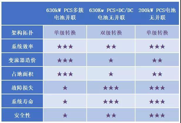 儲(chǔ)能系統(tǒng)在進(jìn)行了上述架構(gòu)優(yōu)化之后,在與偏重參數(shù)、并網(wǎng)、質(zhì)保等的“頂配”方案和增加大量DC/DC轉(zhuǎn)換器的“新技術(shù)”方案相比,在系統(tǒng)效率、變流器造價(jià)、占地面積、故障損失、系統(tǒng)壽命和安全性,性價(jià)比顯然要更高一些。