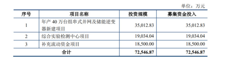 近日,寧波錦浪新能源科技股份有限公司(以下簡稱“錦浪科技”)發(fā)布2020 年度非公開發(fā)行股票預(yù)案。根據(jù)公告,通過本次非公開發(fā)行股票募集資金總額不超過72,546.87萬元,其中年產(chǎn)40萬臺組串式并網(wǎng)及儲能逆變器新建項(xiàng)目投資規(guī)模35,012.83萬元,綜合實(shí)驗(yàn)檢測中心項(xiàng)目投資規(guī)模19,034.04萬元,補(bǔ)充流動(dòng)資金項(xiàng)目投資規(guī)模18,500.00萬元。