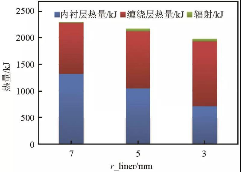 圖4 內(nèi)襯層厚度對儲(chǔ)氫瓶內(nèi)氫氣散熱量的影響