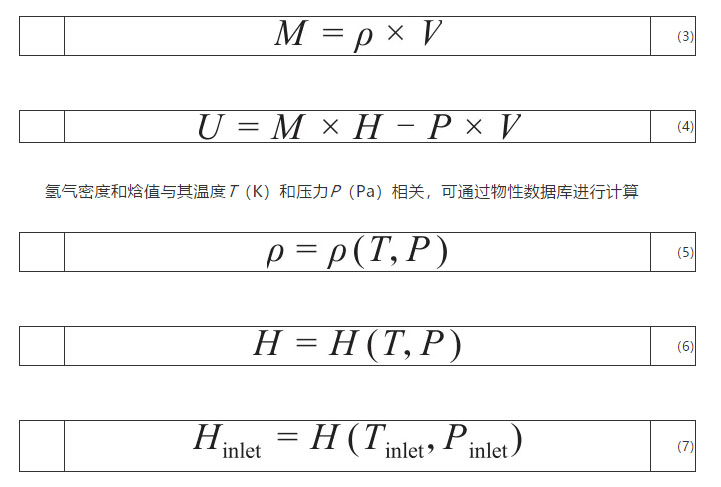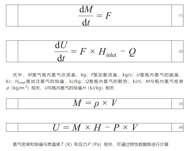 采用0維氫氣模型和1維儲(chǔ)氫瓶壁面模型對加氫過程進(jìn)行建模。對儲(chǔ)氫瓶內(nèi)氫氣進(jìn)行質(zhì)量與能量衡算,存在如下關(guān)系方程