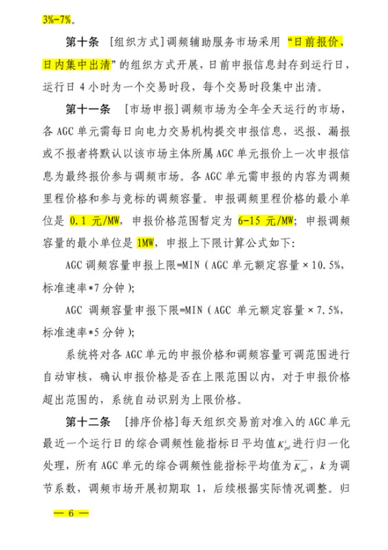 申報(bào)調(diào)頻里程價(jià)格的最小單位是0.1元/MW,申報(bào)價(jià)格范圍暫定為6-15元/MW,申報(bào)調(diào)頻容量的最小單位是1MW。