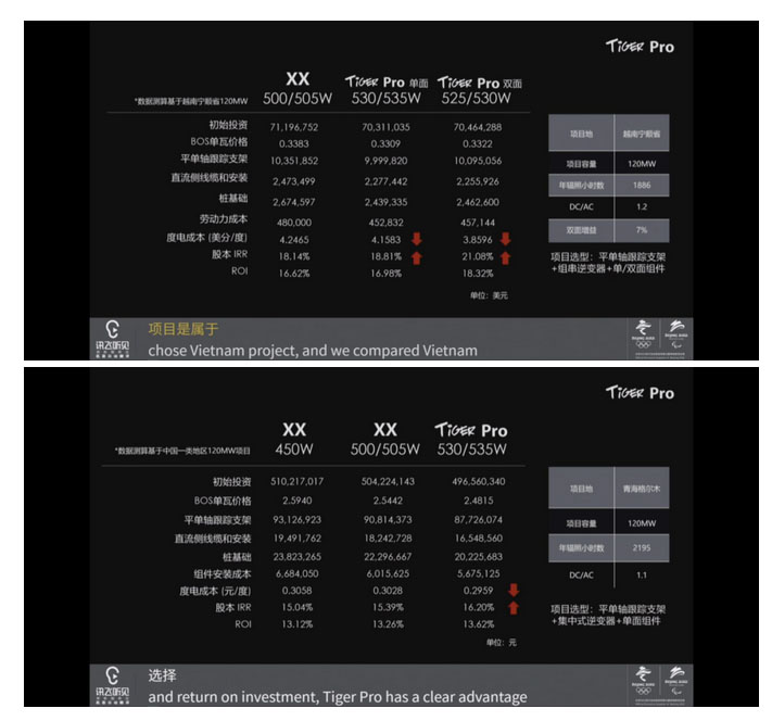 周超杰在新品發(fā)布會(huì)上表示,Tiger Pro延續(xù)了Tiger系列采用的疊焊技術(shù),目前Tiger組件出貨已經(jīng)超過(guò)了2GW,在此基礎(chǔ)上,Tiger Pro已經(jīng)完成了所有產(chǎn)品的升級(jí)方案,并將于2020年第三季度實(shí)現(xiàn)全面量產(chǎn),年度規(guī)劃產(chǎn)能10GW。