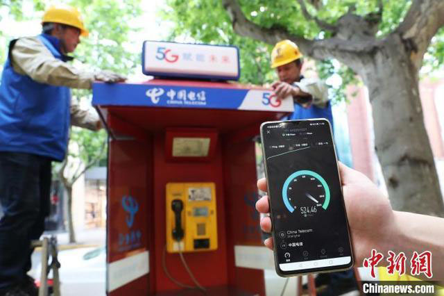 5月15日,在上?;春V新飞?,中國電信上海公司的工作人員正在電話亭的頂蓋內(nèi)安裝調(diào)試5G微基站。據(jù)悉,為彌補(bǔ)5G室外宏站的覆蓋盲區(qū),中國電信上海公司利用自身優(yōu)勢、盤活存量資源在電話亭上加裝5G小微基站,實(shí)現(xiàn)市區(qū)5G信號的無縫覆蓋。預(yù)計(jì)年內(nèi)將完成100多處電話亭的改造升級。