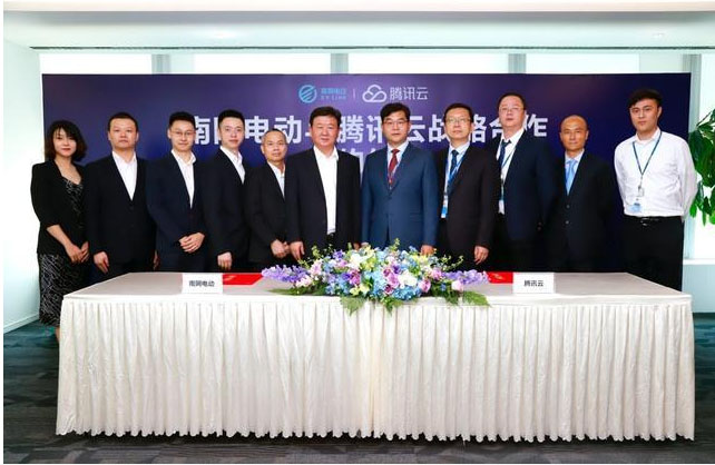 南網(wǎng)電動董事長鄒大中、總經(jīng)理程文輝、副總經(jīng)理吳昊,騰訊云副總裁張浩、智慧能源行業(yè)總經(jīng)理程華軍、智慧能源行業(yè)副總經(jīng)理柳旭東等出席簽約儀式。