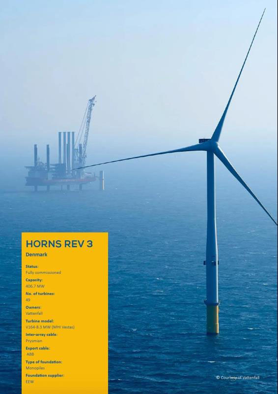 2019 年,丹麥的海上風(fēng)電新增并網(wǎng)容量達到創(chuàng)紀(jì)錄的374MW,占全歐洲的10%。該國最大的海上風(fēng)電場Horns Rev 3 的總裝機容量為407MW,目前已全部并網(wǎng)。