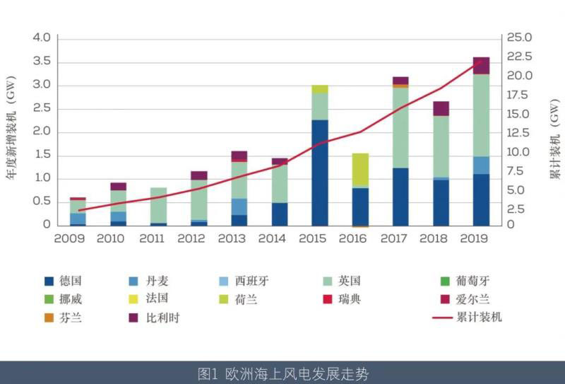 2019 年,歐洲海上風(fēng)電產(chǎn)業(yè)備受關(guān)注。國際能源署(IEA)發(fā)布的“2019年海上風(fēng)電展望”顯示,到2040 年,海上風(fēng)電有望成為歐洲的主要電力來源,在地區(qū)實現(xiàn)碳中和過程中發(fā)揮關(guān)鍵作用。(摘編自O(shè)ffshore Wind in Europe Key trends and statistics 2019)CWEA