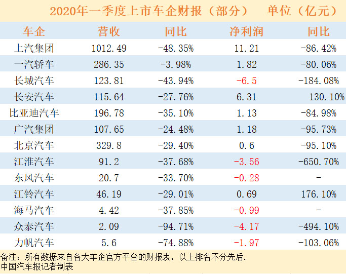 近日,隨著多家國(guó)內(nèi)上市車(chē)企2020年一季度財(cái)報(bào)的陸續(xù)發(fā)布,銷(xiāo)量下滑的影響也直觀地體現(xiàn)在了一季度財(cái)報(bào)上。車(chē)企們一季度營(yíng)業(yè)收入和凈利潤(rùn)雙下滑,虧損經(jīng)營(yíng)也成為普遍現(xiàn)象。主要受疫情影響,上汽集團(tuán)、一汽轎車(chē)、比亞迪、長(zhǎng)城、北京汽車(chē)、廣汽集團(tuán)在一季度遭遇“滑鐵盧”,面臨營(yíng)收、凈利雙下跌,其中凈利潤(rùn)下滑均超八成;大部分合資工廠都位于疫情核心地區(qū)湖北省的東風(fēng)汽車(chē),呈現(xiàn)虧損也是意料之中;雖然長(zhǎng)安汽車(chē)、江鈴汽車(chē)一季度凈利潤(rùn)實(shí)現(xiàn)同比增長(zhǎng)超100%,但扣除非經(jīng)常性損益后仍為虧損狀態(tài);而對(duì)于原本處在邊緣化的眾泰汽車(chē)、海馬和力帆股份來(lái)說(shuō),今年一季度財(cái)報(bào)更是不忍直視,行業(yè)“馬太效應(yīng)”加速。