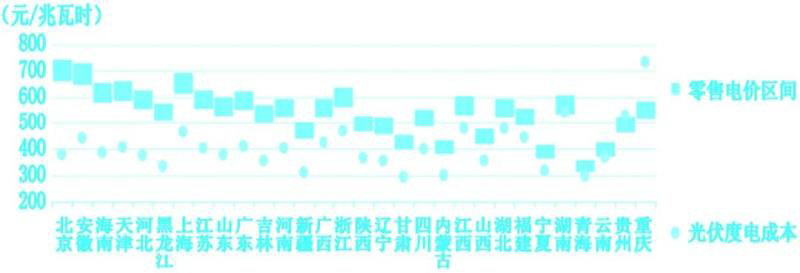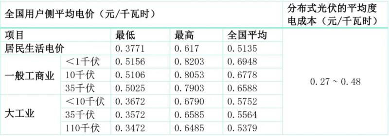 我國分布式光伏的平均度電成本為0.27~0.48元/千瓦時,全國用戶側(cè)平均電價為0.5135~0.6948元/千瓦時,用戶側(cè)的分布式光伏平價已經(jīng)實現(xiàn)。