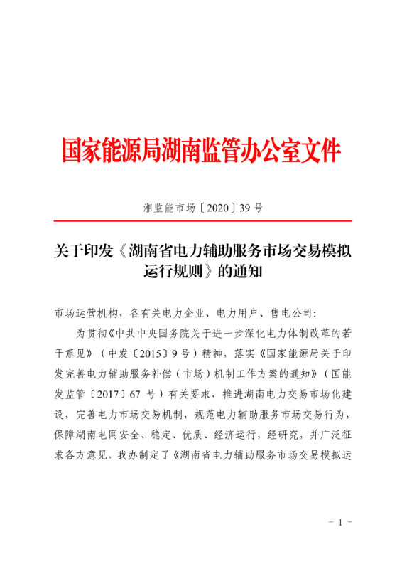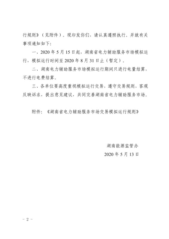 近日,湖南能監(jiān)辦印發(fā)《湖南省電力輔助服務(wù)市場交易模擬運行規(guī)則》,從5月15日起,湖南省電力輔助服務(wù)市場開始進入模擬運行,模擬運行時間截止日2020年8月31日,模擬運行期間只進行電量結(jié)算,不進行電費結(jié)算。