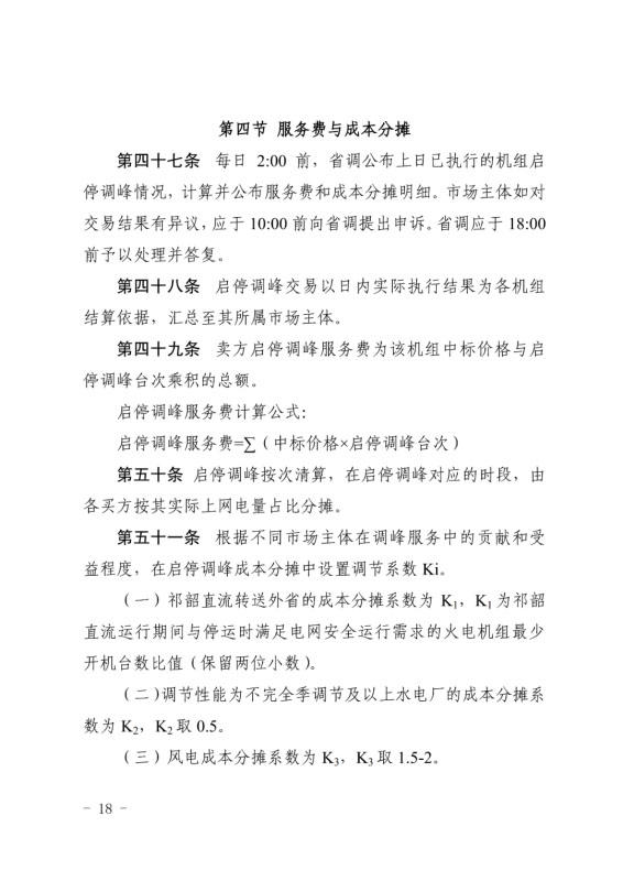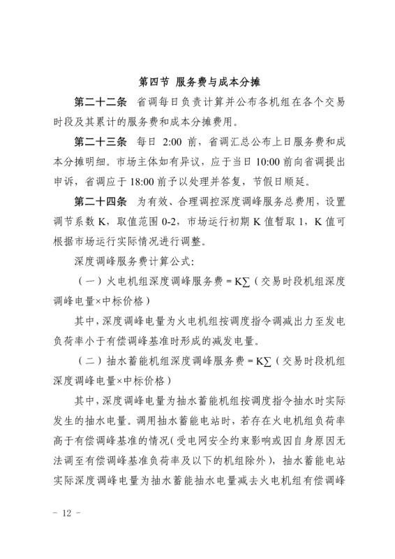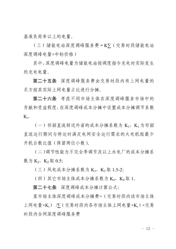 四、對于深度調(diào)峰服務(wù)分攤方面,考慮不同市場主體在深度調(diào)峰服務(wù)市場中的貢獻和受益程度,在深度調(diào)峰成本分攤中設(shè)置成本分攤調(diào)節(jié)系數(shù)Ki,其中風電K3取1.5-2,為各類市場主體中最高,明顯加大了對風電的考核力度。