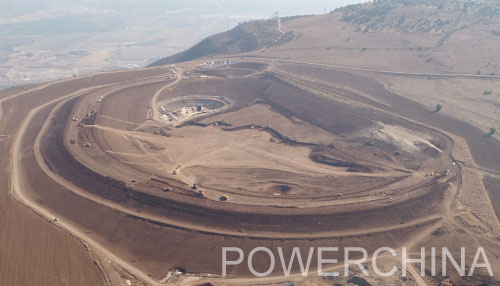 中東抽蓄項(xiàng)目位于約旦河下游西岸,上水庫(kù)位于河谷西岸的山頂,可眺望至供水源加利利海,壩頂高程209.1米,由防浪墻和壩頂公路等組成。上水庫(kù)主壩為均質(zhì)土壩,壩內(nèi)覆蓋土工膜,總填筑量148萬立方米,蓄水量310余萬立方米,蓄水位高程207.8米。庫(kù)盆開挖區(qū)主要分布著高含水高液限粘土,大部分含礫石和漂石,為了降低天然含水率實(shí)現(xiàn)土料快速上壩施工,項(xiàng)目部不斷經(jīng)過方案比選優(yōu)化,最終選定“土料薄層平采+退占法鋪料”快速施工工藝,并在2019年11月填筑施工過程中創(chuàng)造了28萬立方米高產(chǎn)紀(jì)錄,圓滿完成年度生產(chǎn)任務(wù)。