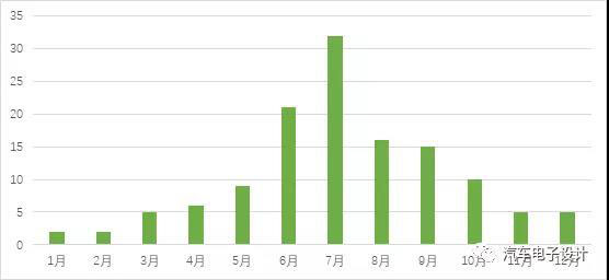 在這里進(jìn)行拆分,包括之前天氣較為炎熱的5-6月和7-8月兩個區(qū)段。加上之前在《2019年動力電池安全性研究報告》里面的一些統(tǒng)計,能夠得到以下的圖表。