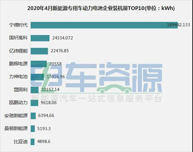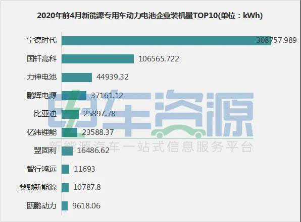 電車資源梳理了2020年1-4月新能源專用車動力電池裝機(jī)量的情況,簡要分析如下: