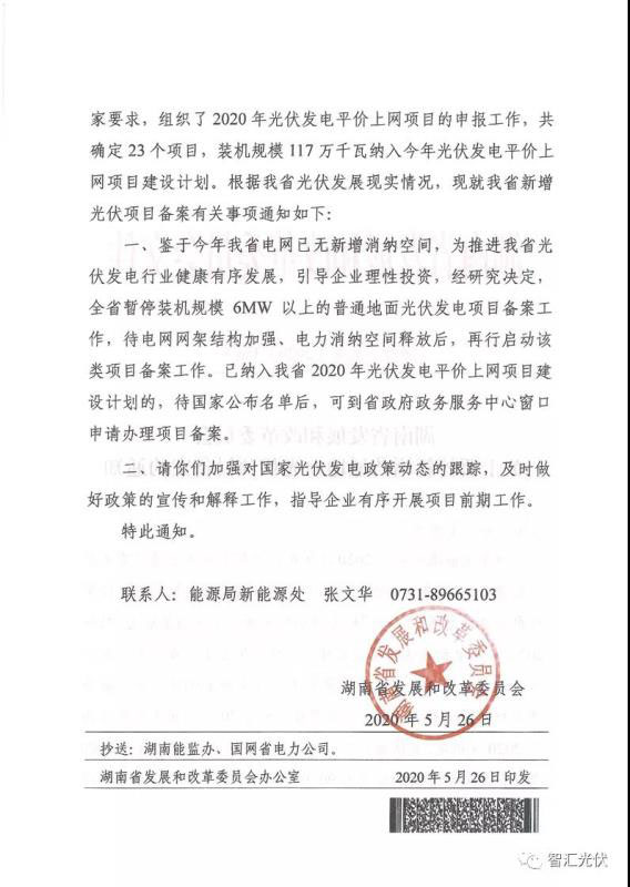 2、湖南:暫停6MW以上普通光伏電站項(xiàng)目并網(wǎng)