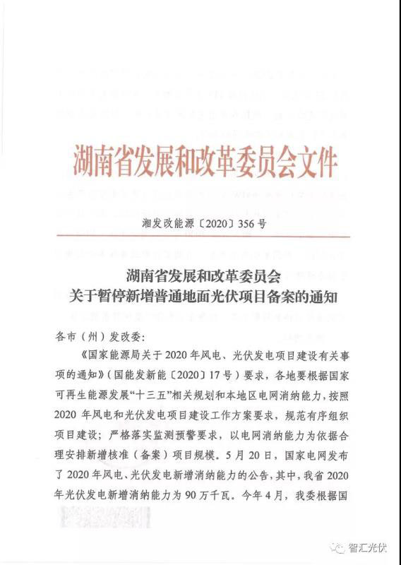 5月26日,湖南省發(fā)改委發(fā)布了《關(guān)于暫停新增普通地面光伏項(xiàng)目備案的通知》,提出:經(jīng)研究決定,