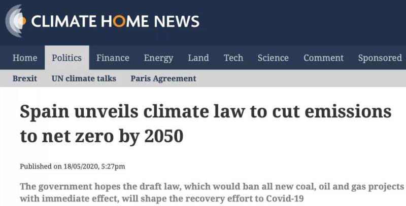西班牙政府于本周向議會(huì)提交法律草案,計(jì)劃在2050年前實(shí)現(xiàn)零碳碳排放。根據(jù)這項(xiàng)法律草案,西班牙政府承諾在本世紀(jì)中葉前使西班牙電力系統(tǒng)實(shí)現(xiàn)100%可再生能源,立即禁止所有新的煤炭、石油和天然氣開(kāi)采項(xiàng)目,終止化石燃料直接補(bǔ)貼,并在2040年前使所有新的車(chē)輛無(wú)排放。