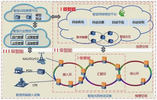 而烽火通信的“泛在、超寬、開放、隨需”的智慧光網(wǎng)解決方案能夠強有力地支撐電信運營商的智慧網(wǎng)絡(luò)。這里的“隨需”指以NaaS(網(wǎng)絡(luò)即服務(wù))為核心價值的NAI(網(wǎng)絡(luò)人工智能)能力。烽火NAI結(jié)構(gòu)如圖1所示。應(yīng)用數(shù)字孿生技術(shù),以及網(wǎng)元、智慧管控平臺、AI訓(xùn)練平臺三級的分層智能為光網(wǎng)絡(luò)加上“智慧大腦”,實現(xiàn)網(wǎng)絡(luò)帶寬利用率提升、網(wǎng)絡(luò)帶寬自動調(diào)整、網(wǎng)絡(luò)時延優(yōu)化、網(wǎng)絡(luò)性能預(yù)測、網(wǎng)絡(luò)故障預(yù)防和溯源、網(wǎng)絡(luò)自動配置和綠色節(jié)能。2019年,為應(yīng)對5G網(wǎng)絡(luò)運維的挑戰(zhàn),浙江移動聯(lián)合烽火創(chuàng)新,在5G現(xiàn)網(wǎng)驗證了AI在智慧光網(wǎng)中的“隨需”能力。