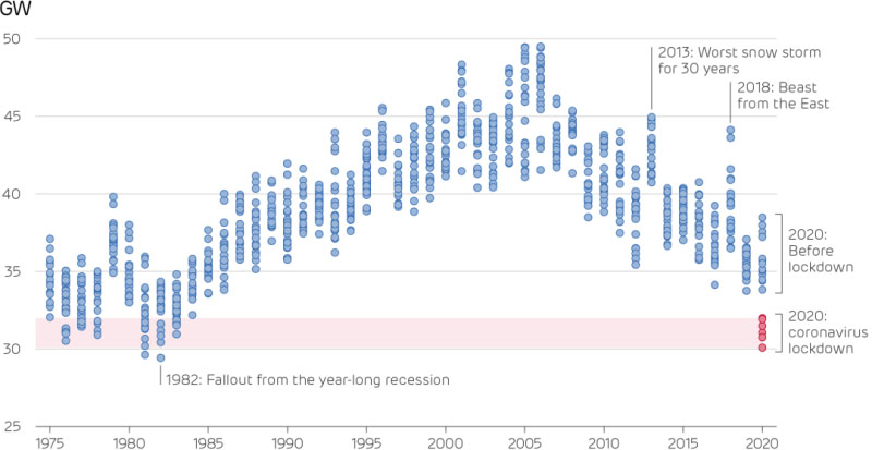 Drax在一個(gè)季度報(bào)告中使用了“在封鎖時(shí)期,每天都像星期日”這樣的標(biāo)題,這意味著,疫情封鎖導(dǎo)致的電力需求下降,對發(fā)電行業(yè)的影響巨大。