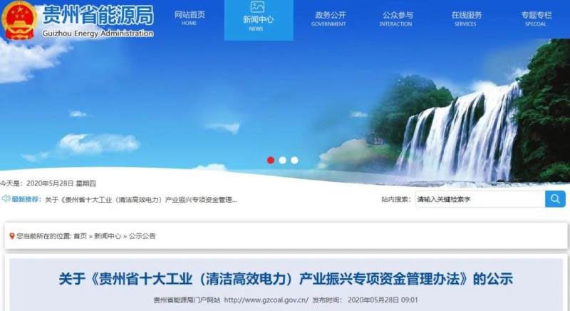 5月28日,《貴州省十大工業(yè)(清潔高效電力)產(chǎn)業(yè)振興專項資金管理辦法》向社會公示。