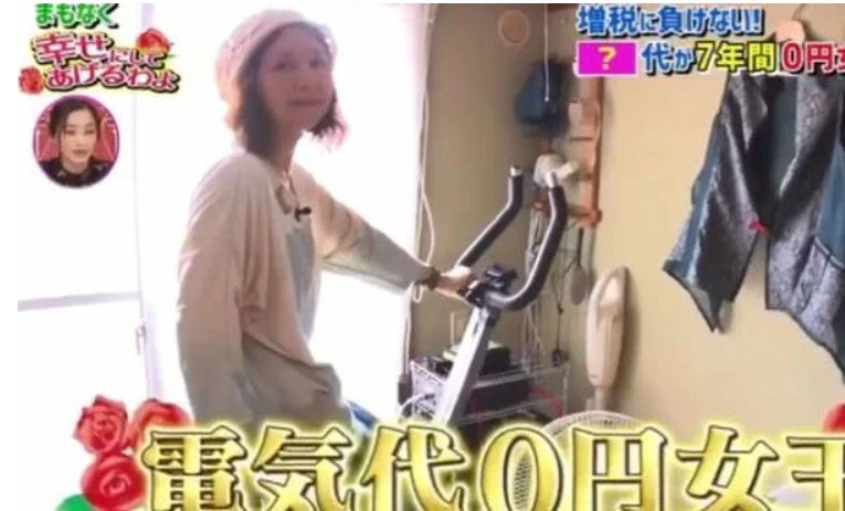 藤井智佳子在2012年9月,主動(dòng)向電力公司要求停止供電,花費(fèi)18萬(wàn)日元(約合人民幣1.2萬(wàn)元)在家中裝設(shè)太陽(yáng)能板,請(qǐng)專(zhuān)家特制一臺(tái)“發(fā)電飛輪單車(chē)”,讓她可以在家中踩單車(chē)發(fā)電,自給自足。
