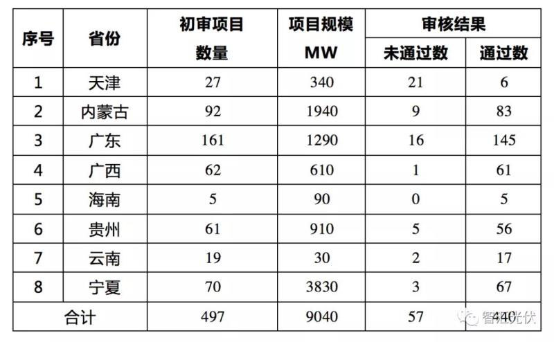 收到初審通過項目情況:共計52個項目,裝機容量209萬千瓦,包括風電項目11個、裝機容量66萬千瓦,普通光伏電站41個、裝機容量143萬千瓦。