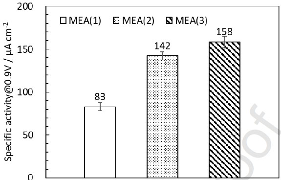 0.9 V電壓下MEA(1)、MEA(2)和MEA(3)的面積比活性
