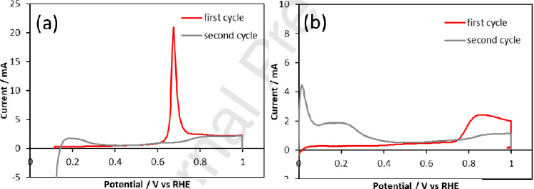 濕操作(a)和碳氟化合物流體填充(b)下MEA(2)陰極CO消除伏安圖