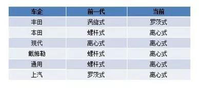 主要燃料電池汽車廠商空壓機(jī)類型對(duì)比