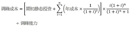 依據期初靜態(tài)投資、年成本、經濟壽命、調峰能力等為參數,測算和分析儲能等不同調峰資源的單位年調峰成本。計算公式為: