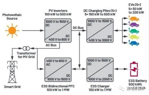未來(lái)電動(dòng)汽車(chē)充電站的功率變換系統(tǒng)配置示意圖