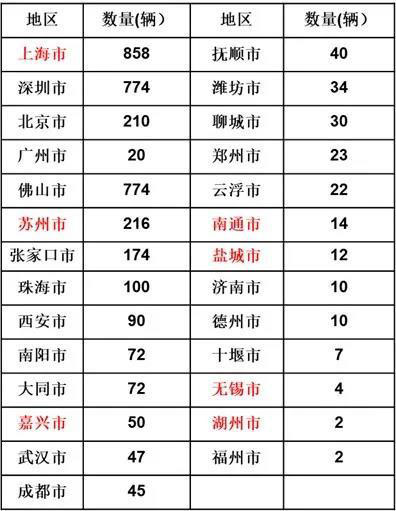 注:紅色為長三角地區(qū)城市 數(shù)據(jù)來源:新能源汽車國家大數(shù)據(jù)聯(lián)盟