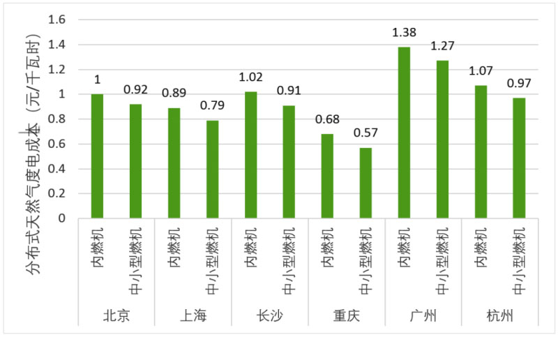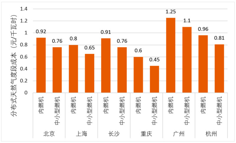 圖2 2019年我國(guó)重點(diǎn)城市分布式天然氣度電成本