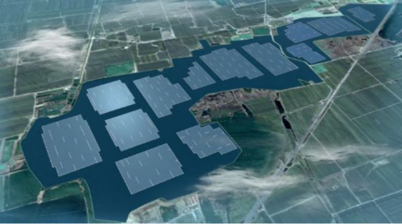 圖片:一個(gè)位于中國安徽省的正在建設(shè)中的70MW漂浮太陽能電站SGI圖形