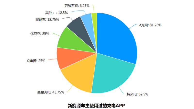 經(jīng)過第一輪的跑馬圈地之后,市面上的公共充電樁App零零散散達到了數(shù)十種,這里面有車企的,有運營商的,也有電池制造企業(yè)的。令車主為難的是,過多的App并沒有帶來更大的便利,反而為充電過程造成了困擾。在問卷中列出的規(guī)模較大的公共充電樁運營商中,使用率較高的前三名分別為:e充網(wǎng)、特來電、星星充電。