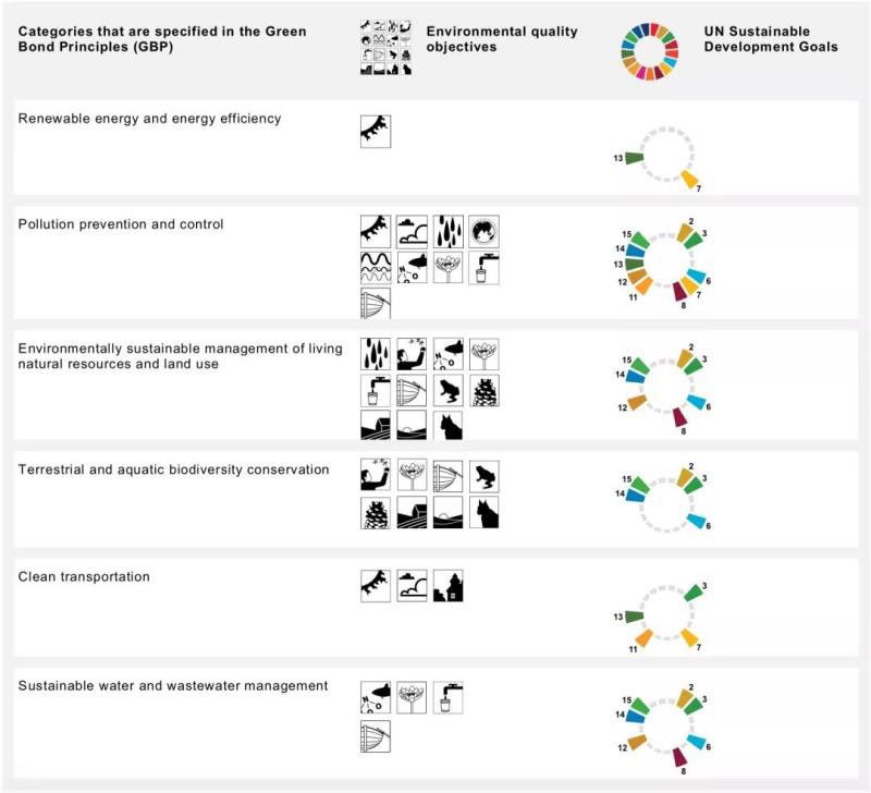 根據(jù)這一框架,債券籌集資金可用于 “合格的綠色支出”,包括旨在減緩氣候變化、加強(qiáng)生物多樣性、促進(jìn)可再生能源項(xiàng)目或減少運(yùn)輸部門碳排放的支出。綠色債券不能用于與核能、化石能源、大規(guī)模水電(10兆瓦以上)相關(guān)的投資。具體來說,瑞典綠色債券可用于支持以下項(xiàng)目: