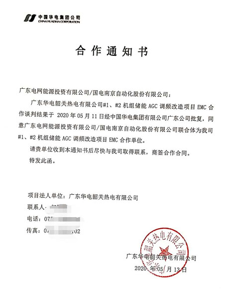 近日,國(guó)電南自新能源科技有限公司收到廣東華電韶關(guān)熱電有限公司“儲(chǔ)能AGC輔助調(diào)頻項(xiàng)目”中標(biāo)通知書(shū),為韶關(guān)熱電公司2X350MW機(jī)組提供10MW/10MWh全套儲(chǔ)能系統(tǒng)與設(shè)備。