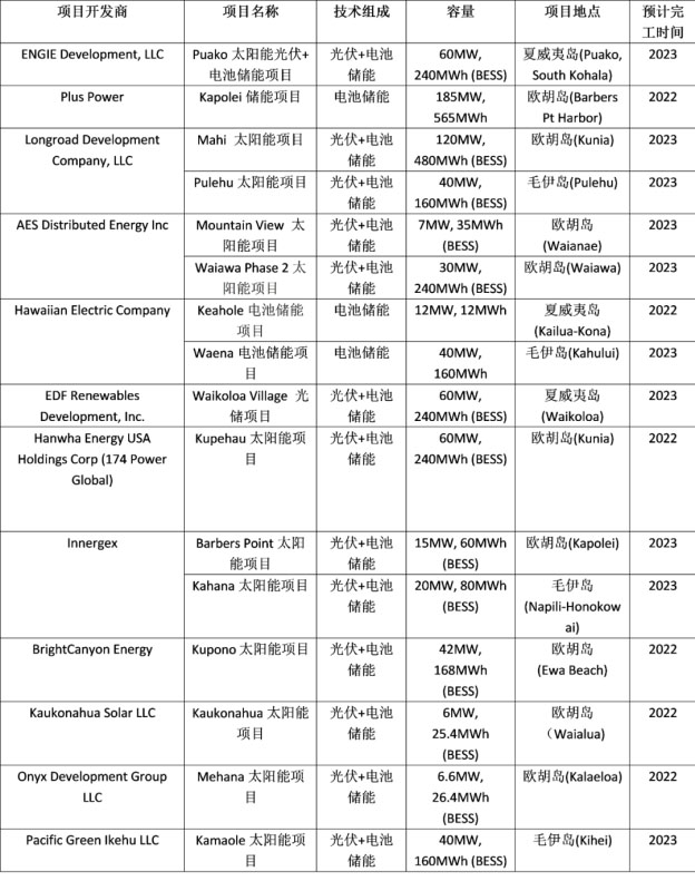 據(jù)外媒報(bào)道,近日,夏威夷電力公司(Hawaiian Electric)公布了他們將在夏威夷州部署的16個(gè)光儲(chǔ)項(xiàng)目以及獨(dú)立儲(chǔ)能項(xiàng)目的中標(biāo)開發(fā)商完整名單,項(xiàng)目共計(jì)460MW的太陽能和近3GWh的電池儲(chǔ)能系統(tǒng)。