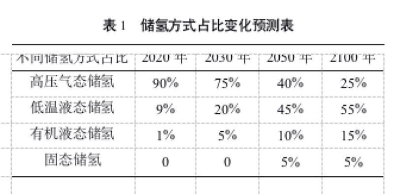 目前工業(yè)氫氣主要采用高壓氣態(tài)的方式儲存,由于成本的限制,液態(tài)儲存的方式使用較少,主要用于航空航天領域。但隨著技術的不斷成熟,預計 2050年液態(tài)儲氫將成為工業(yè)氫氣的主要儲存形式 (表 1)。