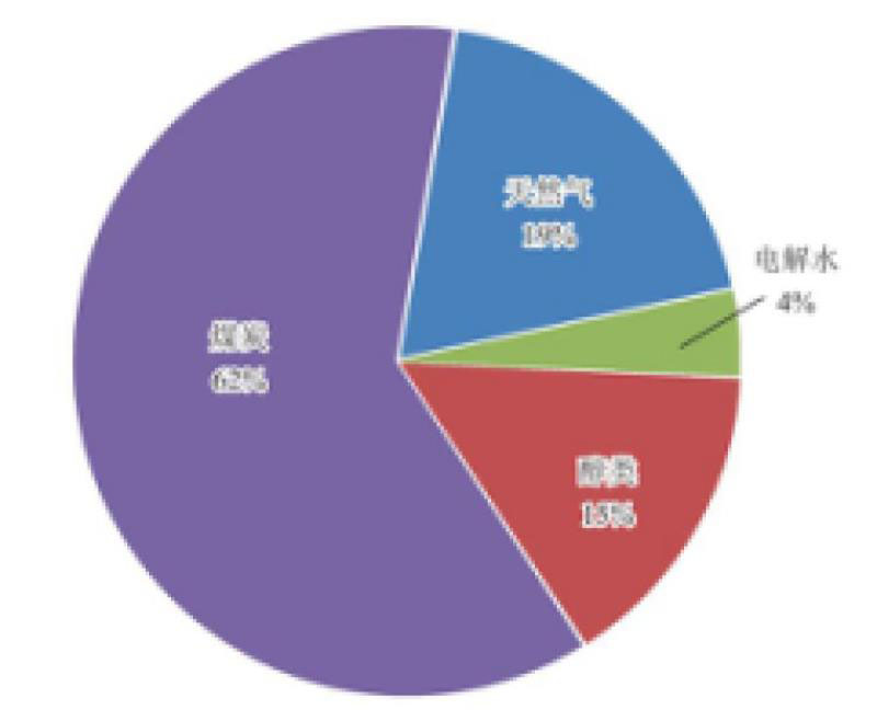 煤的氣化是指煤在高溫常壓或加壓條件下,與氣化劑反應轉(zhuǎn)化成氣體產(chǎn)物。隨著煤制合成氣、煤制油產(chǎn)業(yè)的發(fā)展,煤制氫產(chǎn)量逐年增多,其規(guī)模較大、成本較低,制氫成本約 20元/kg。此外,化工產(chǎn)品(包括合成氨、甲醇等)生產(chǎn)過程中,從含氫弛放氣中回收純度大于 99%工業(yè)氫氣的裝置也日趨成熟與增多。