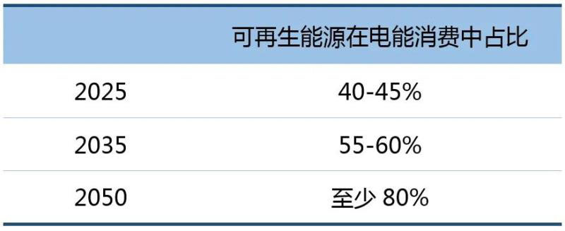 德國聯(lián)邦政府為可再生能源的推行制定了非常高的目標。聯(lián)邦政府計劃到2025年可再生能源在電能消費的百分比將達到40%至45%,2035年達到55%至60%;到本世紀中葉,可再生能源占比將達到至少80%。此外德國聯(lián)邦政府計劃可再生能源消費量占一次能源消費總量的比例從2010年的10%提高至2050年的60%。