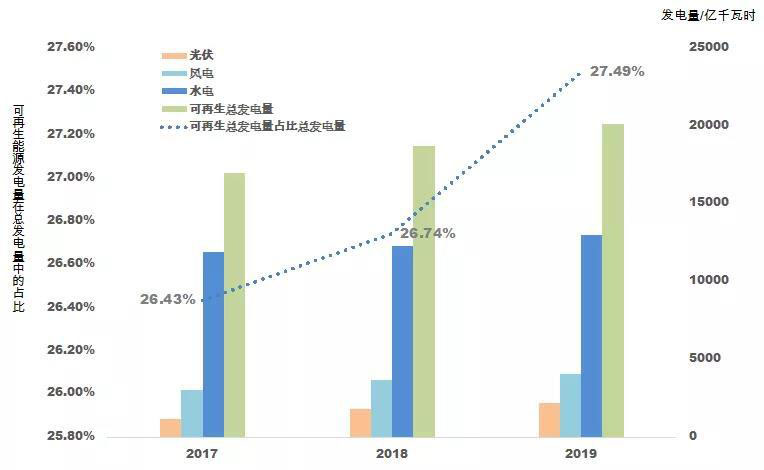 (四)可再生能源消納水平大幅提升。近年來,通過市場化交易不斷優(yōu)化供需關(guān)系,可再生能源發(fā)電量持續(xù)增長,如圖4所示。2019年5月10日,國家發(fā)展改革委、國家能源局聯(lián)合印發(fā)《關(guān)于建立健全可再生能源電力消納保障機(jī)制的通知》(發(fā)改能源〔2019〕807號(hào)),終端電力用戶,特別是市場化終端電力用戶對(duì)自主采購可再生能源的需求進(jìn)一步提高。