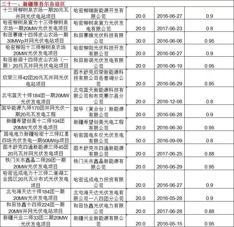 日前,國(guó)家電網(wǎng)公司公示了最新的國(guó)網(wǎng)經(jīng)營(yíng)區(qū)域內(nèi)可再生能源補(bǔ)貼清單復(fù)核通過項(xiàng)目名單,截止目前,已公布江蘇、河南、陜西、新疆、天津、寧夏六個(gè)省市光伏、風(fēng)電項(xiàng)目名單,其中包含82個(gè)光伏項(xiàng)目,總裝機(jī)容量2705.05MW。(注:表格中6MW以上分布式按集中式計(jì)算容量)
