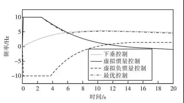 (3)在頻率恢復(fù)階段,應(yīng)降低系統(tǒng)慣性提高頻率恢復(fù)速度,不能采用虛擬慣性控制:頻率偏差較大時,應(yīng)采用下垂控制;頻率變化率較大時,應(yīng)采用虛擬負慣性控制。
