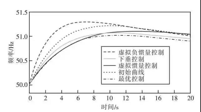 圖3 儲能系統(tǒng)不同控制方式的頻率過程