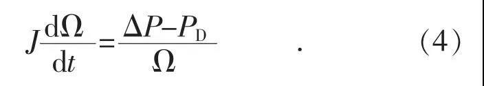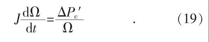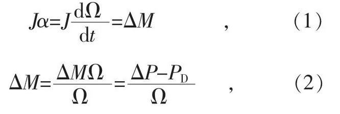 式中:J 為轉(zhuǎn)子的轉(zhuǎn)動慣量;Ω 為轉(zhuǎn)子機械角速度;α 為機械角加速度;ΔM 為作用在轉(zhuǎn)子軸上的不平衡轉(zhuǎn)矩;ΔP 為不平衡功率;PD 為阻尼功率。